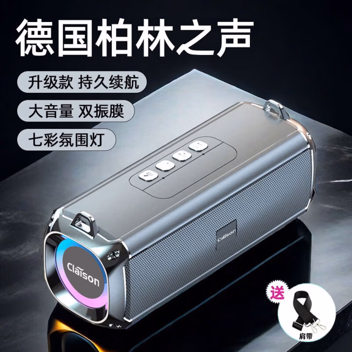 CLAISON蓝牙音箱柏林之音智能音响重低音炮家庭户外便携式桌面电脑无线音响家用防水可插卡高音质超长续航 灰色