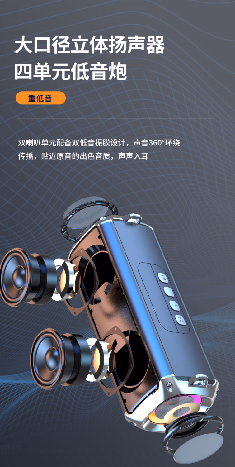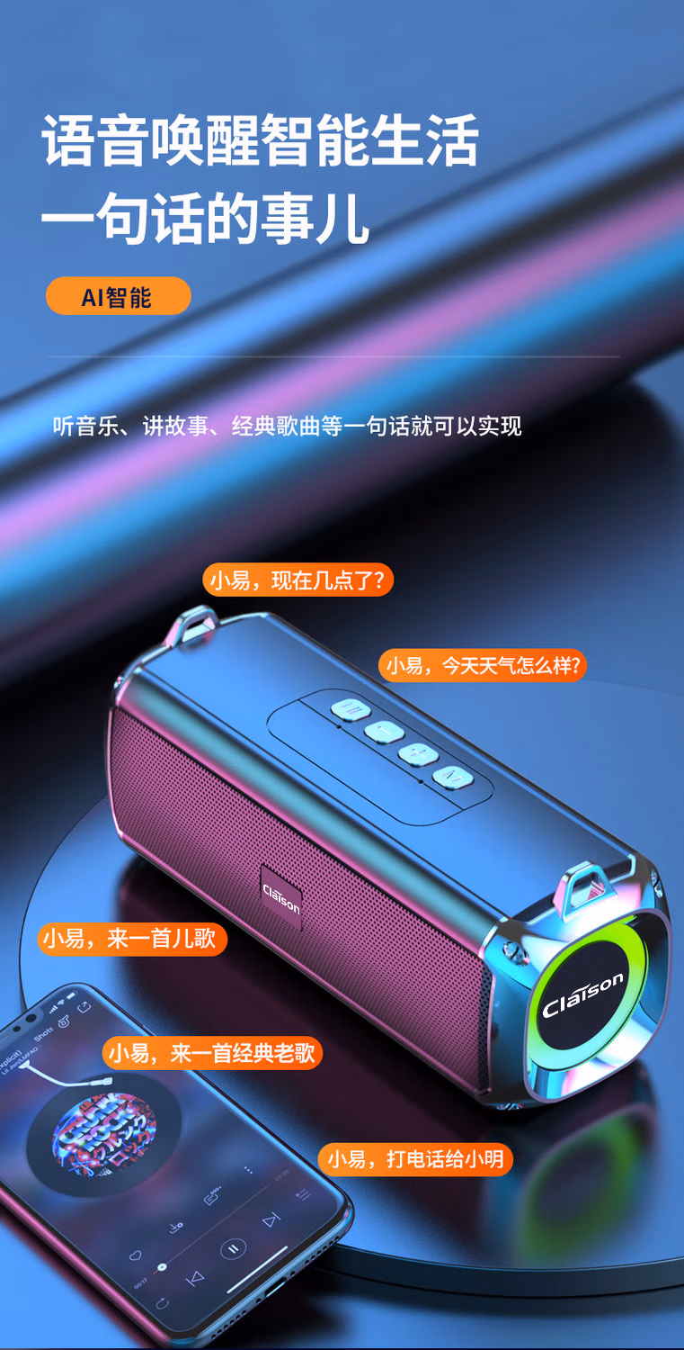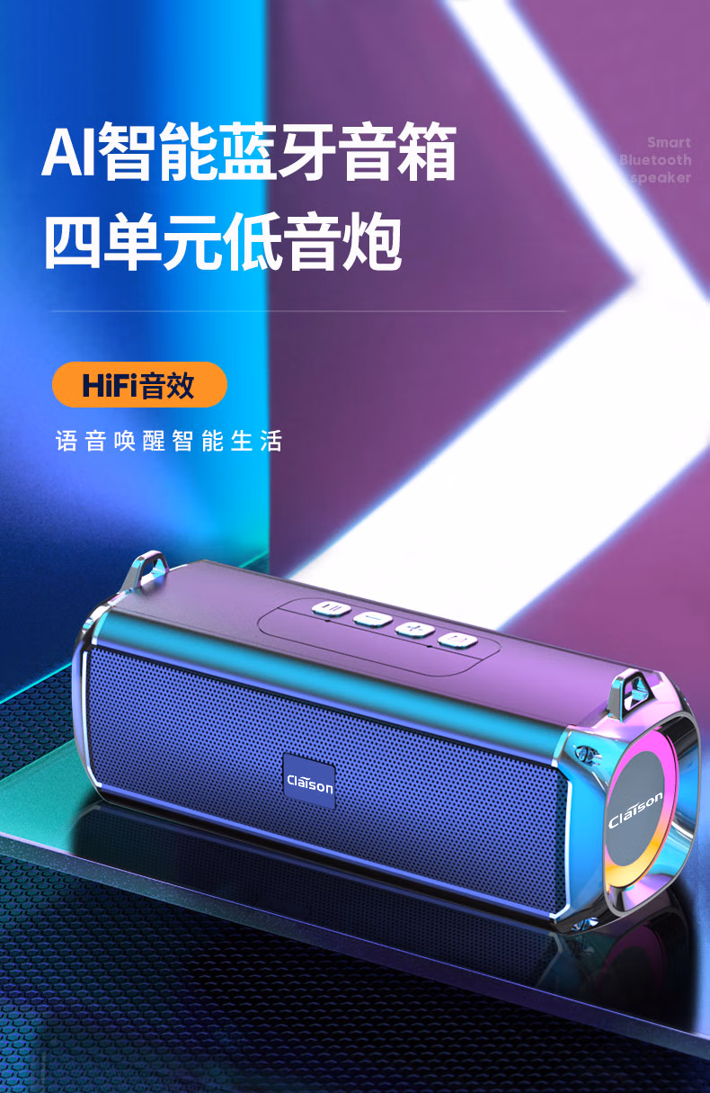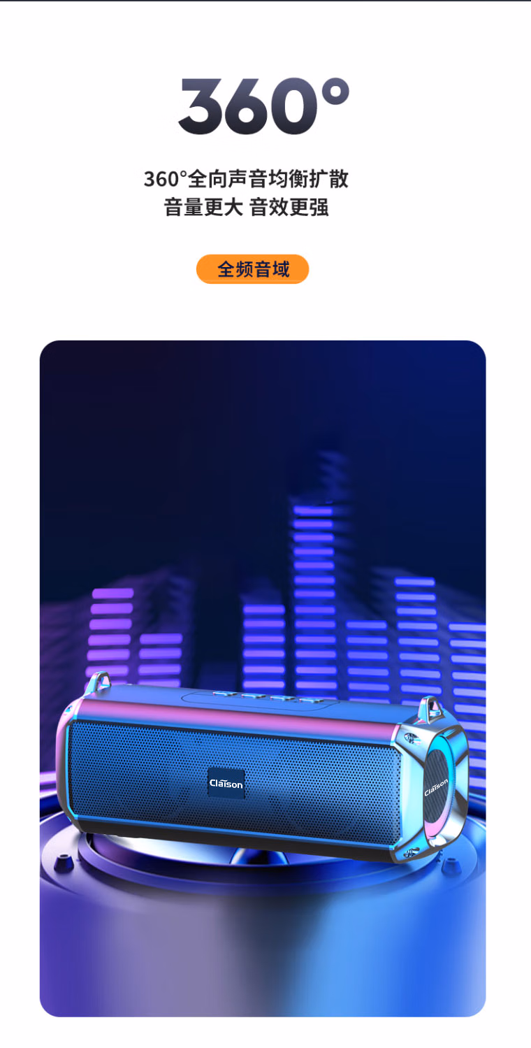 CLAISON蓝牙音箱柏林之音智能音响重低音炮家庭户外便携式桌面电脑无线音响家用防水可插卡高音质超长续航 灰色