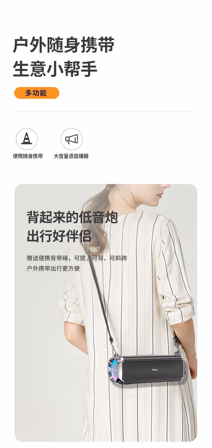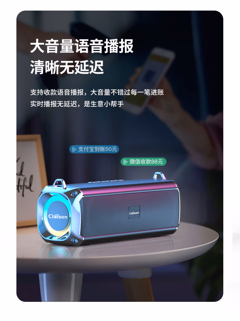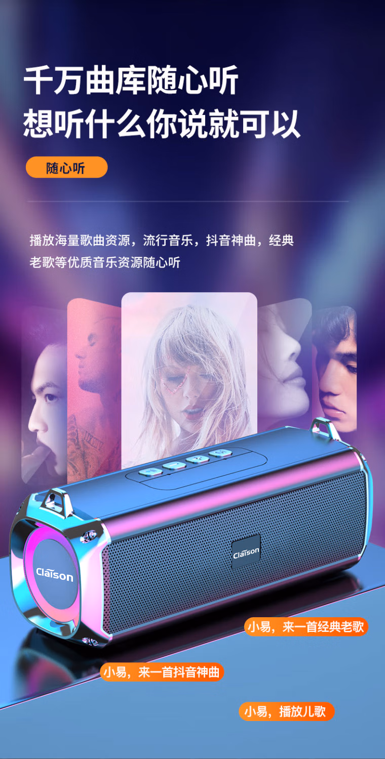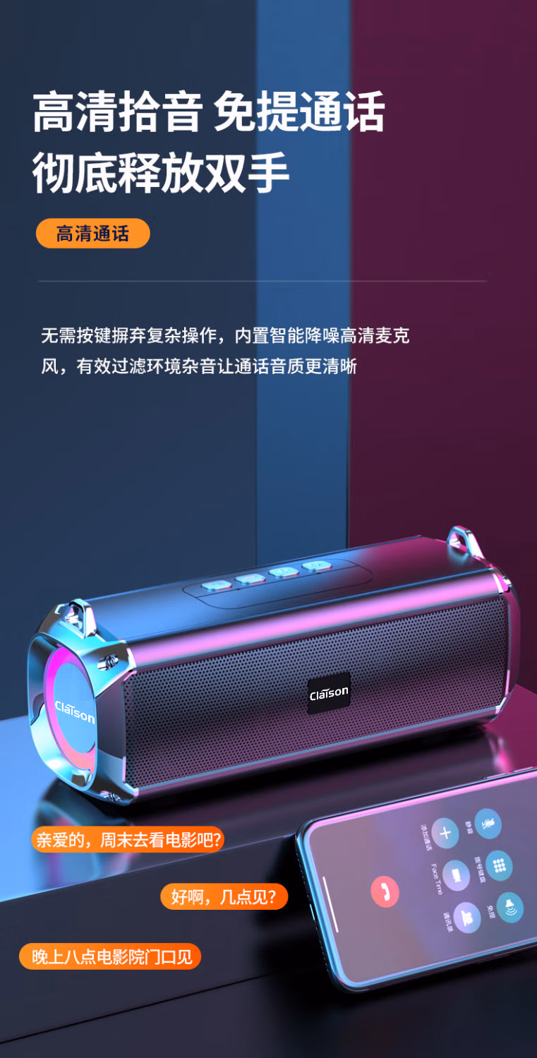 CLAISON蓝牙音箱柏林之音智能音响重低音炮家庭户外便携式桌面电脑无线音响家用防水可插卡高音质超长续航 灰色