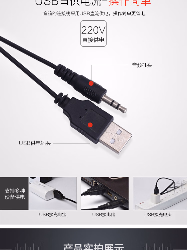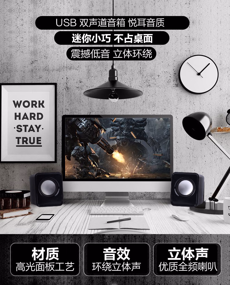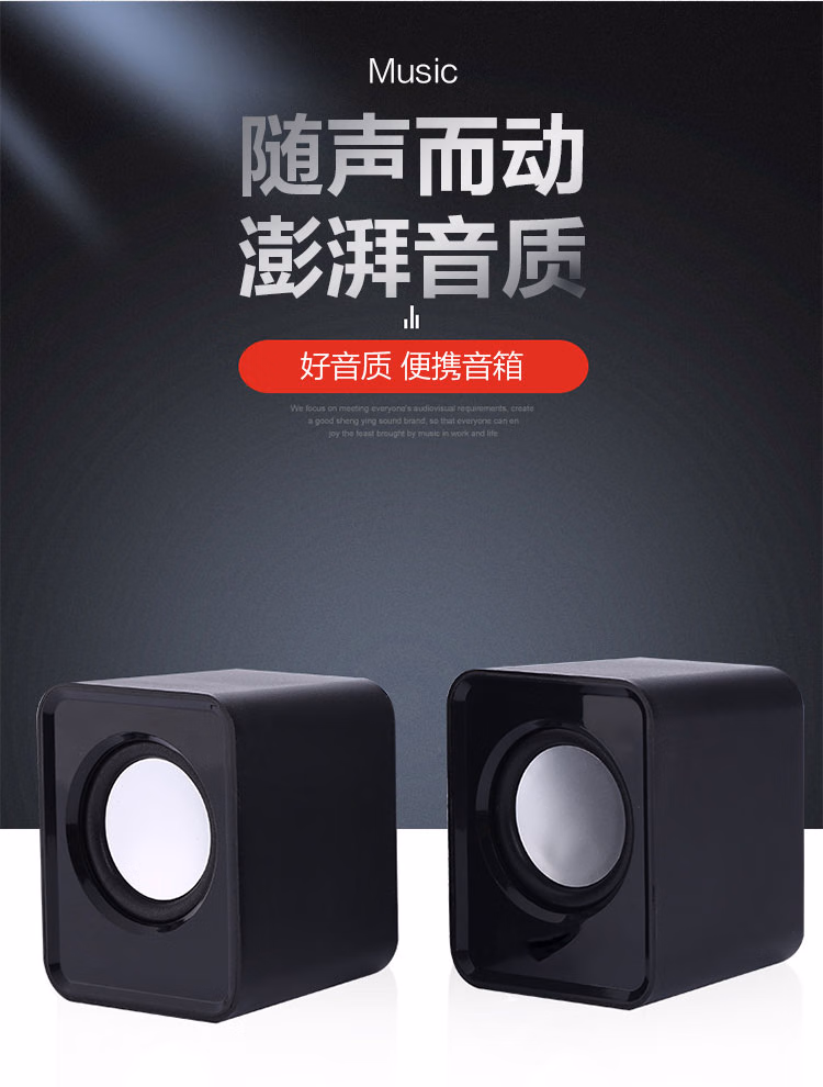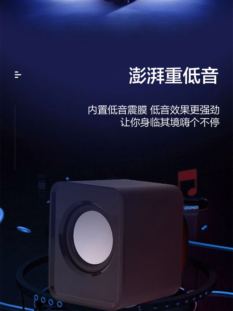 【有线音响】电脑台式低音炮 家用桌面笔记本小音箱 USB多媒体高音质 黑色[线长约65cm]