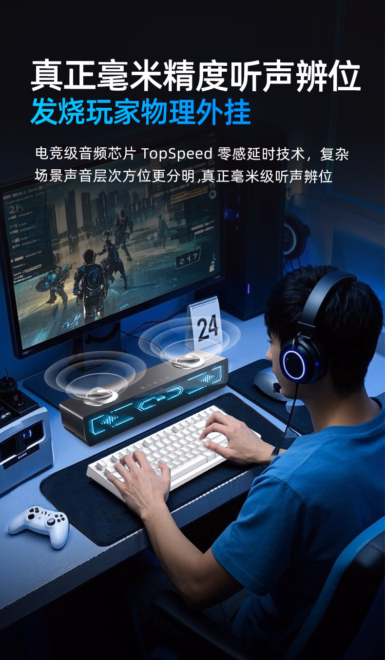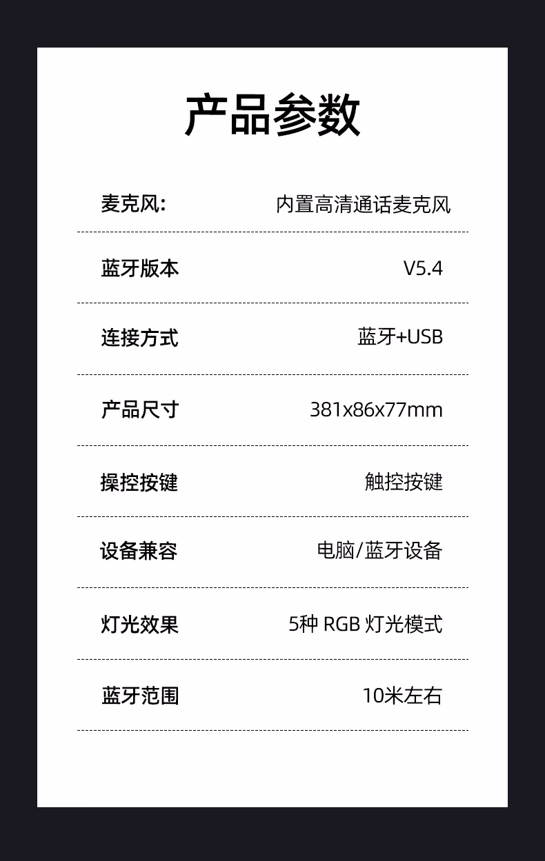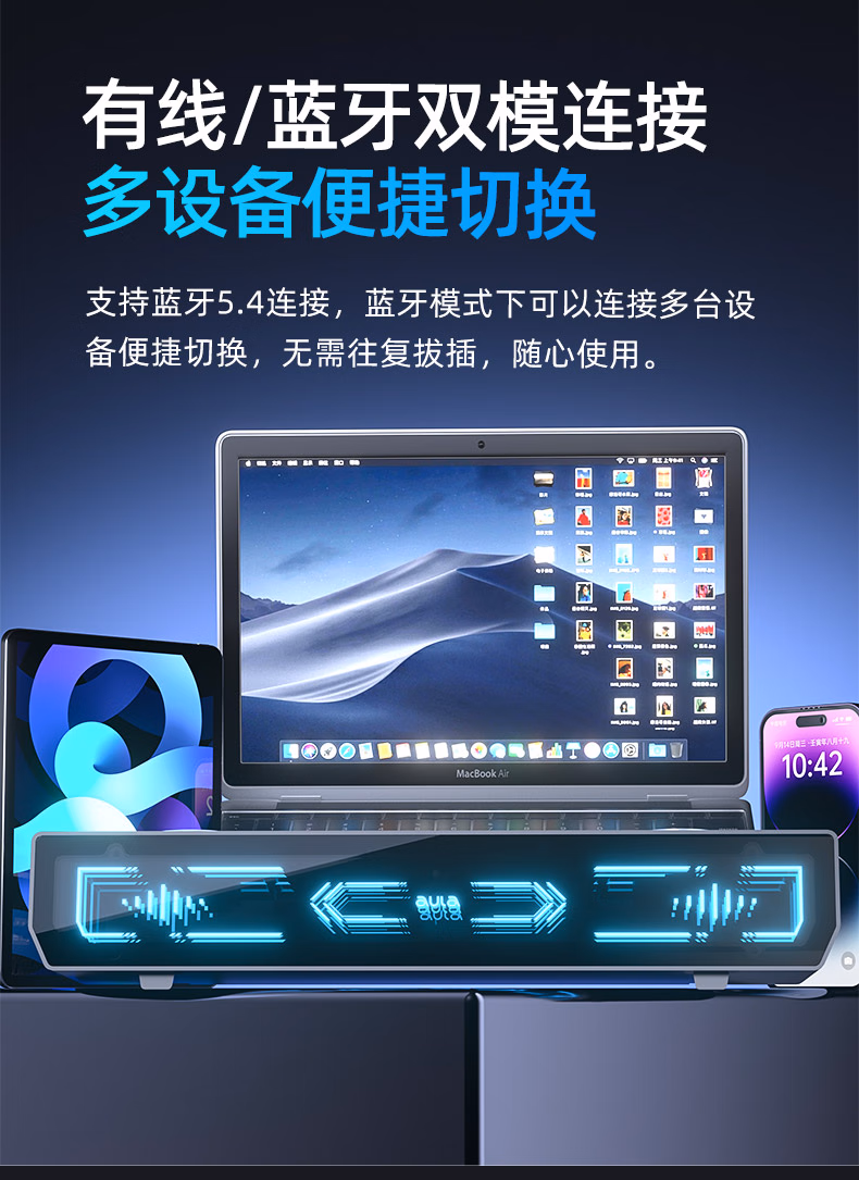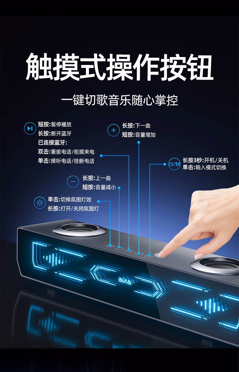 AD100电脑桌面音响音箱家用台式有线蓝牙5.4立体声效双模长条方形音箱内置麦克风 【双模连接高清麦克风】黑色