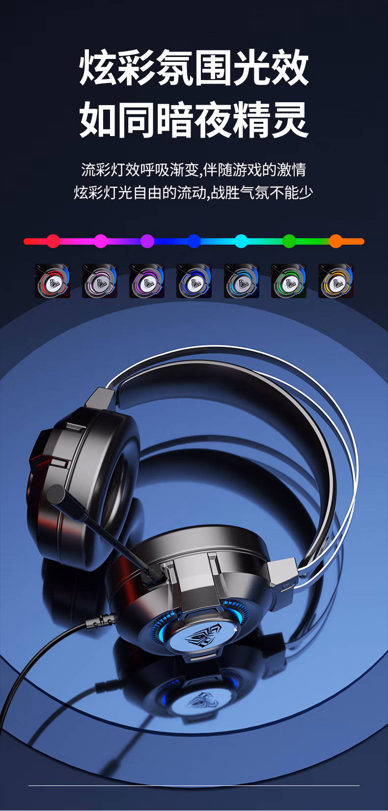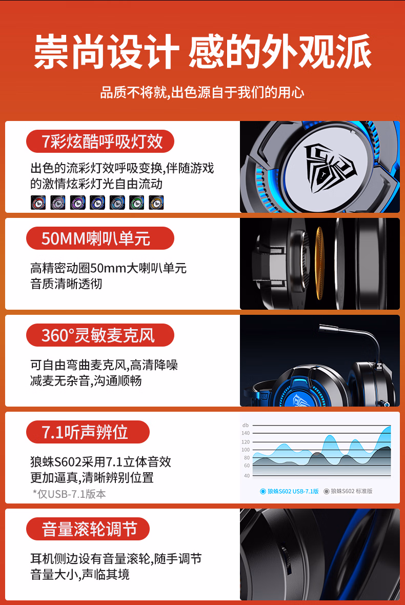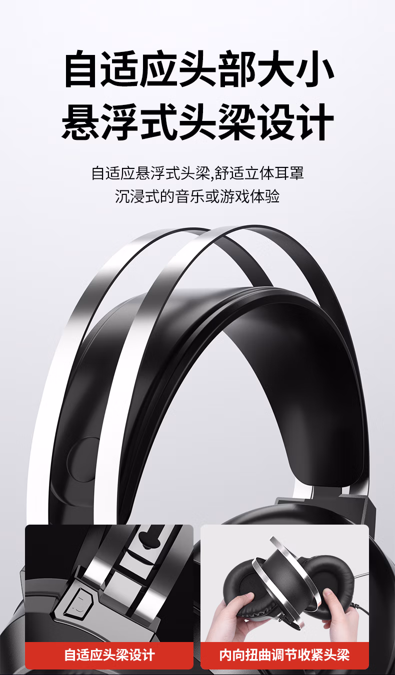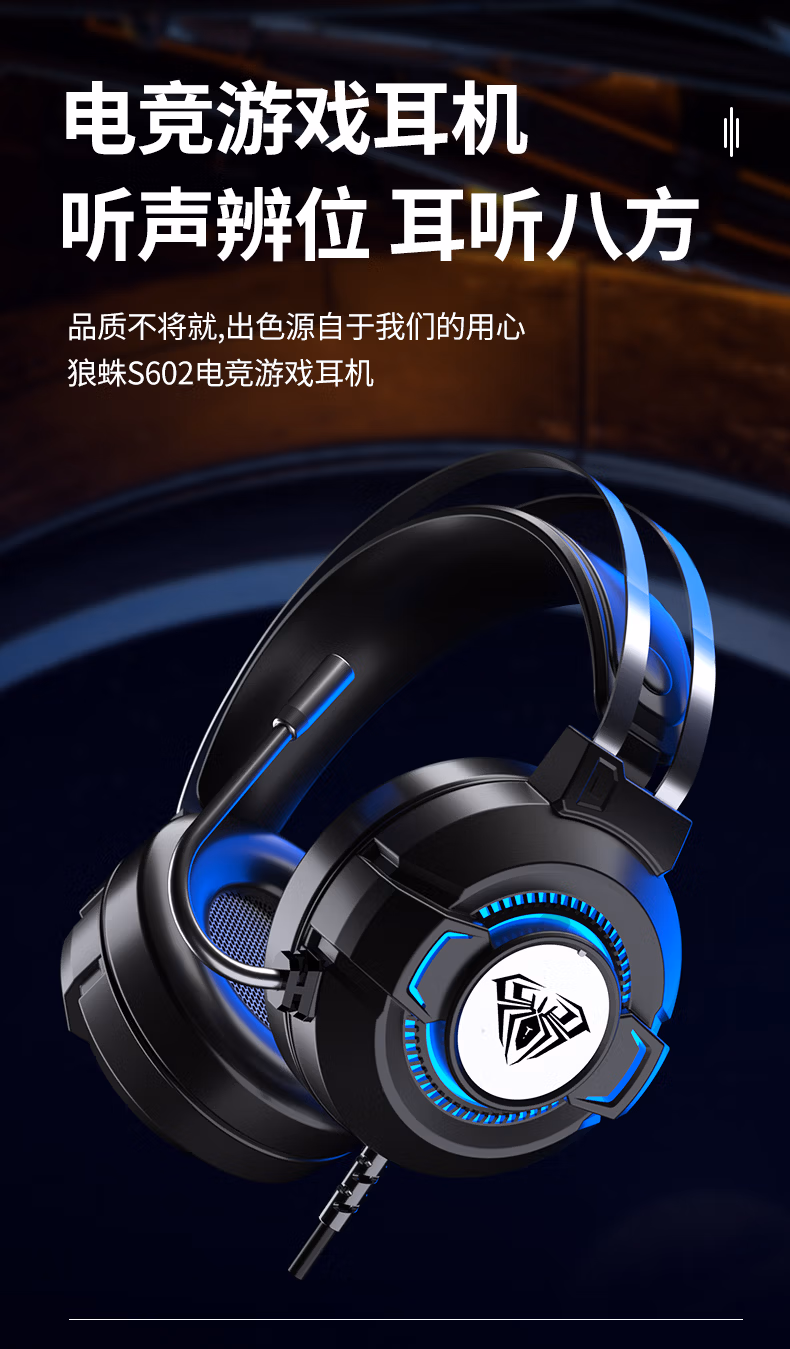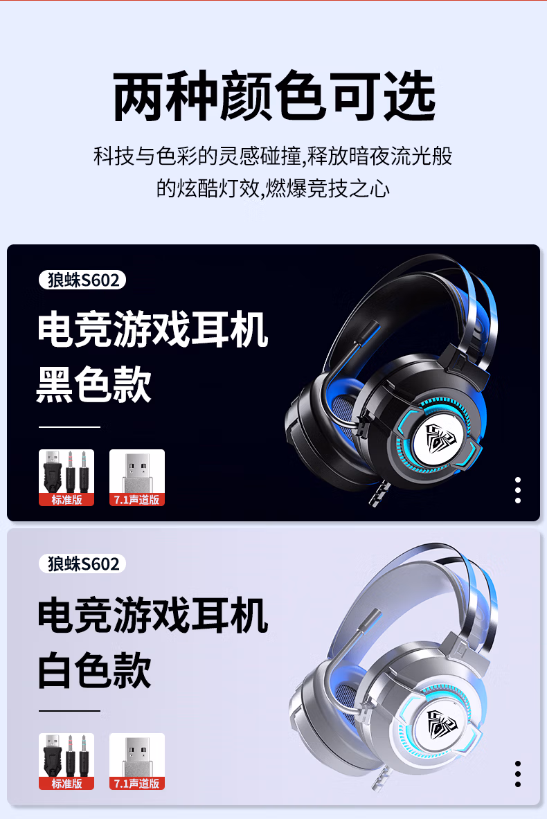 狼蛛(AULA)电脑耳机头戴式耳麦 游戏电竞耳机7.1笔记本电脑重低音有线降噪听声辩位 典雅白【USB+双3.5接口】