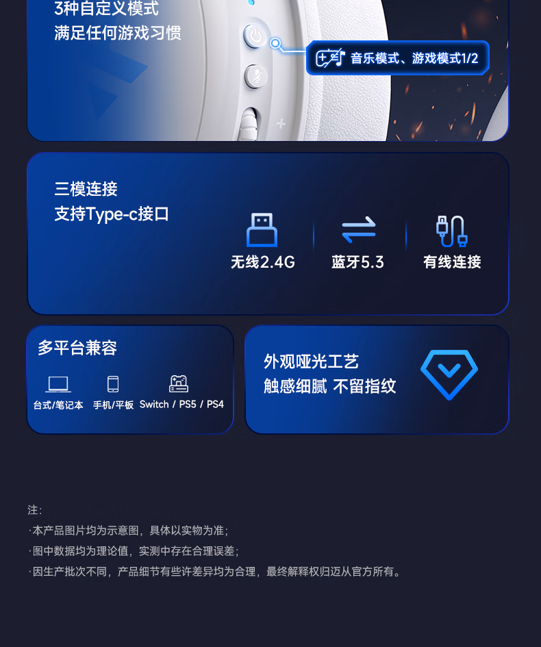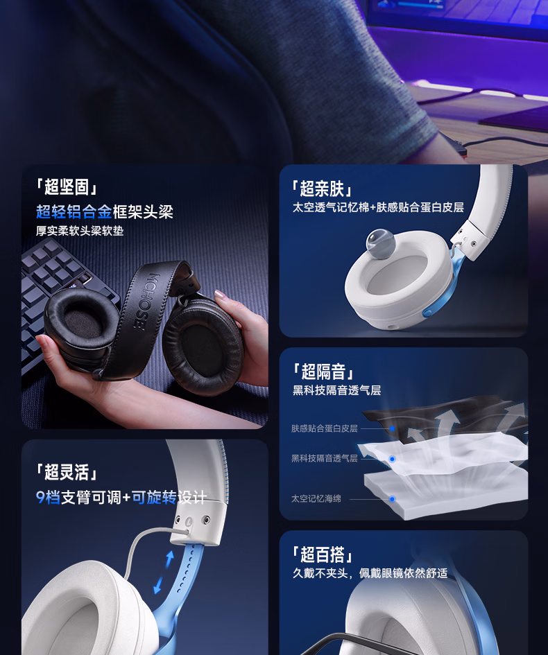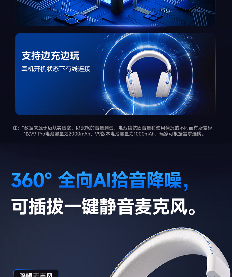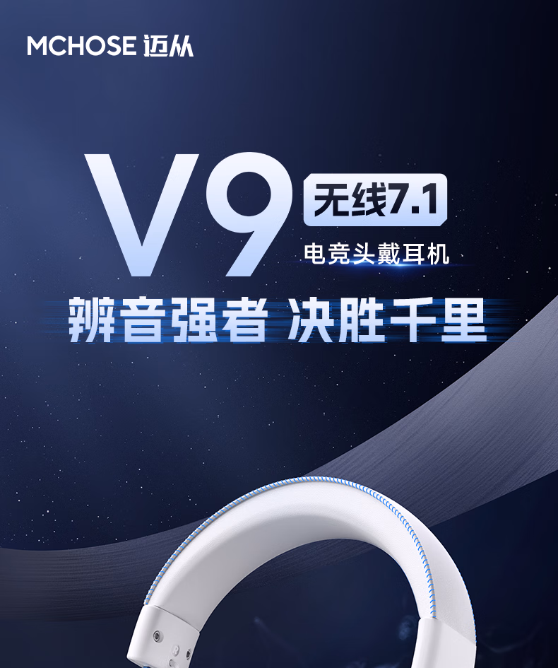 V9 Pro游戏耳机头戴式电竞电脑耳机三角洲行动fps吃鸡听声辨位电竞芯片声卡7.1声道无线蓝牙有线