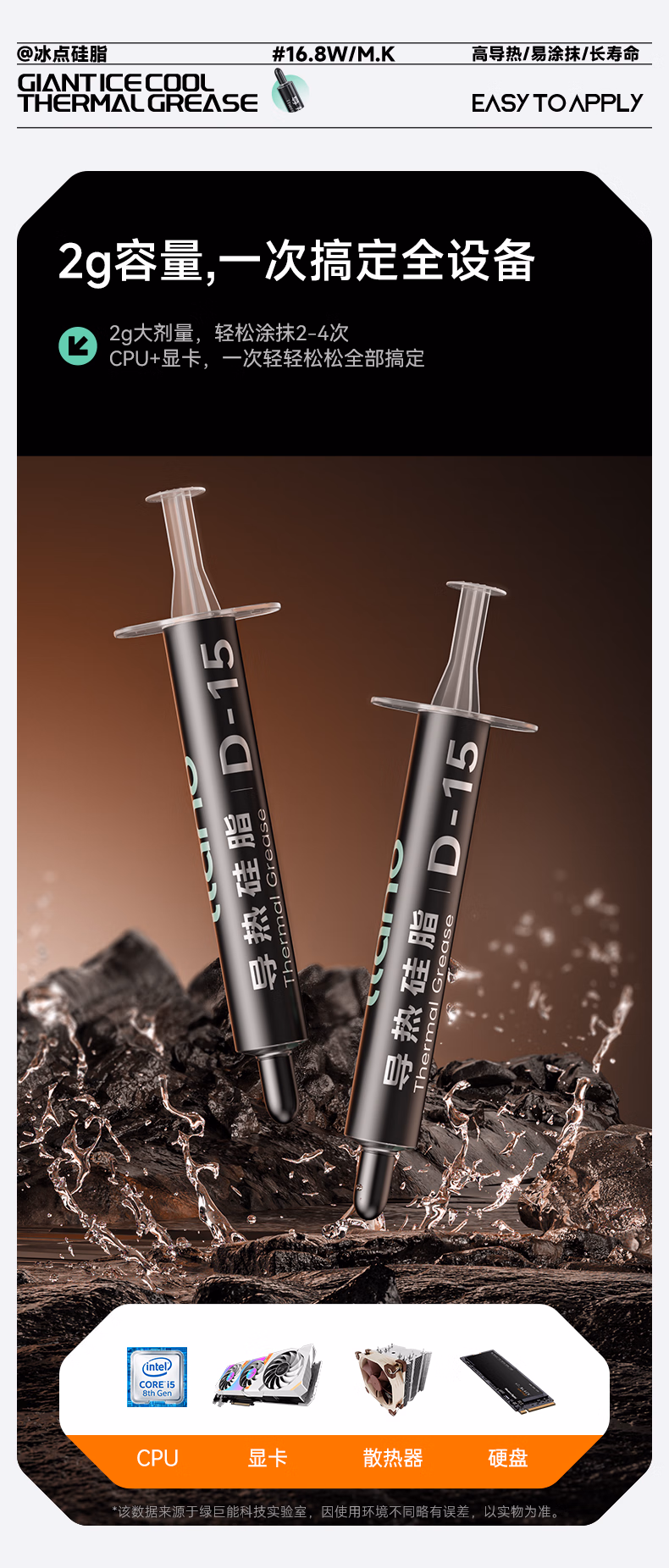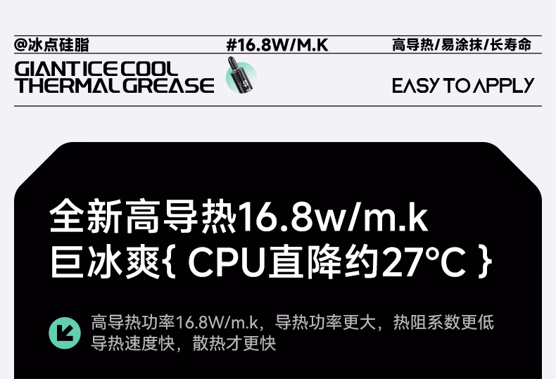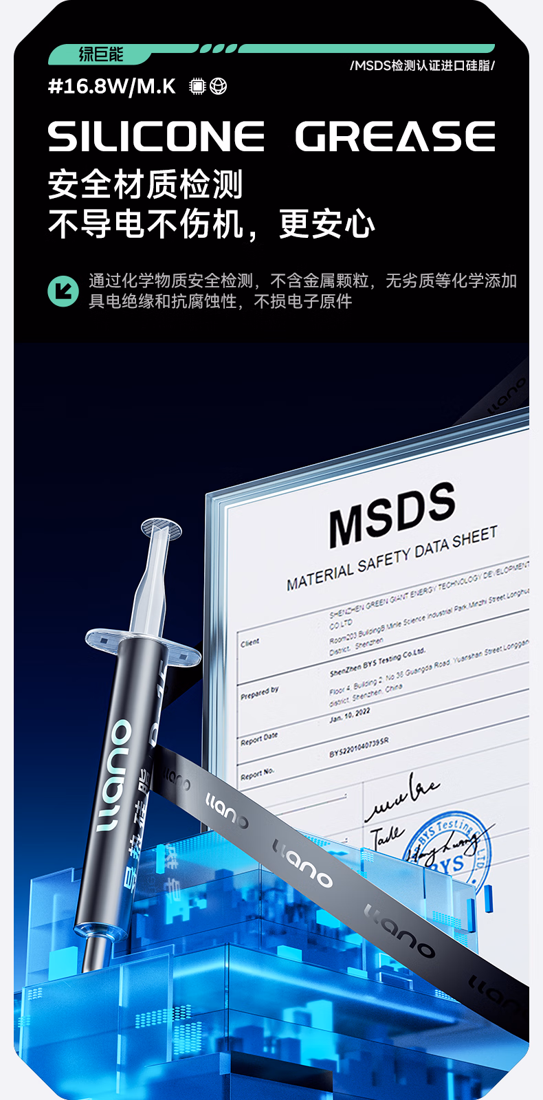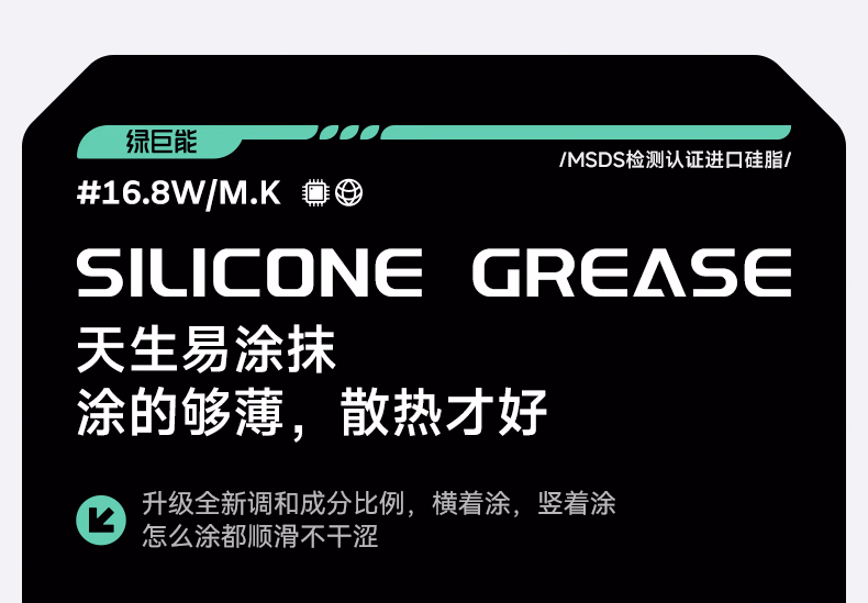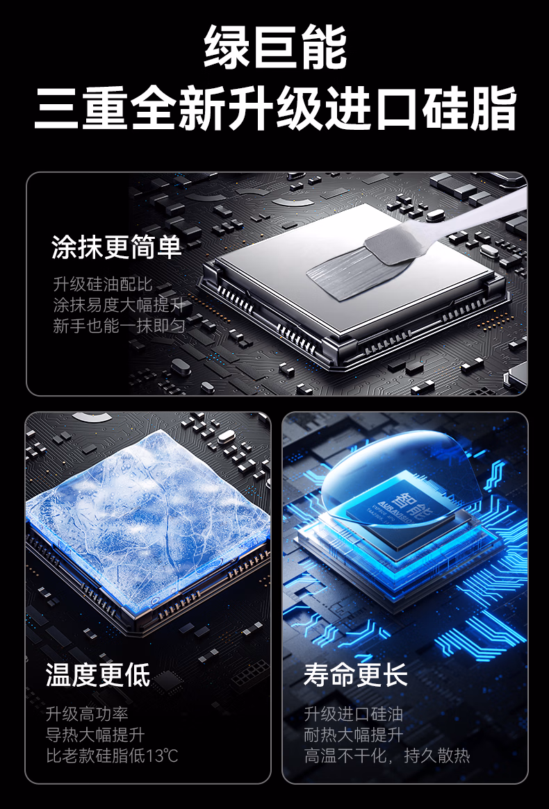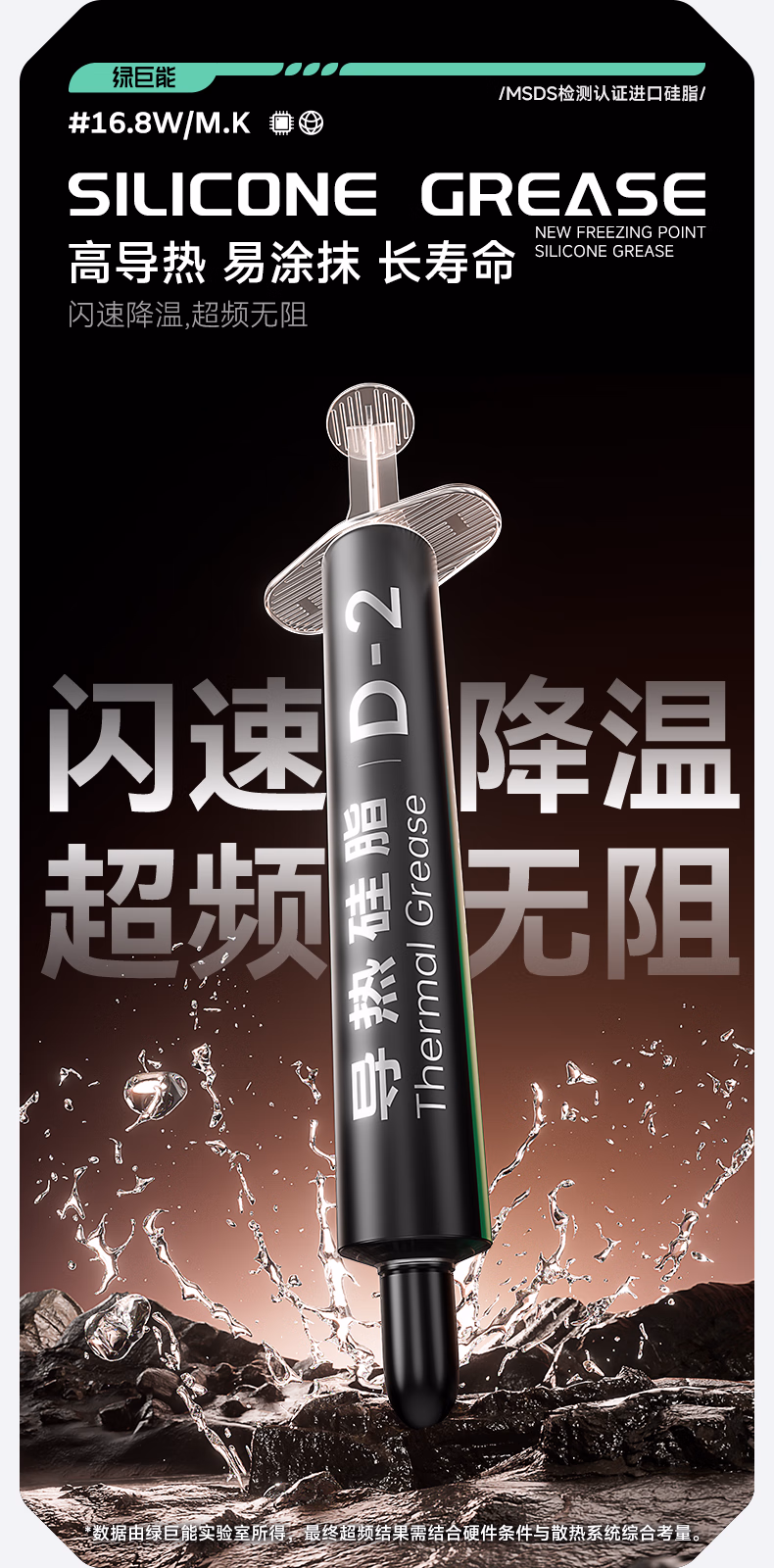 绿巨能(llano)硅脂散热导热CPU芯片主机笔记本电脑显卡液态硅胶膏系数13.8(W/m·K)2g*1