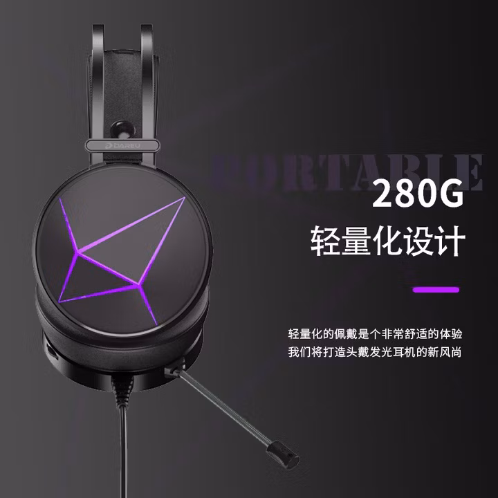 达尔优(dareu) EH722RGB游戏耳机三角洲行动听声辩位7.1声道头戴式耳机台式电竞耳机明末渊虚之羽幻彩黑